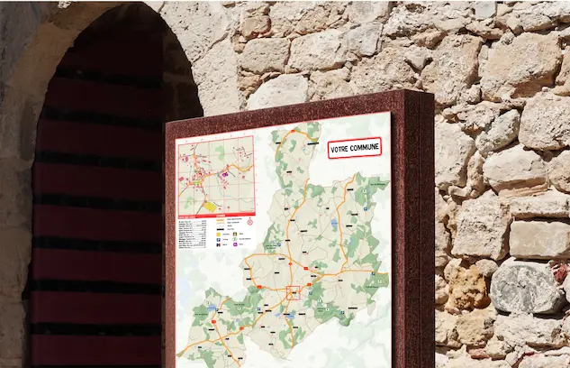 Plans de ville, signalétique directionnelle et identité visuelle pour valoriser le territoire de votre commune.